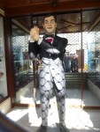 Whoa! that last gust of wind almost landed me on my butt. The rain in Spain does not land mainly in the plain, it can be foul weather during your vacation. Cabin fever was setting in, we, Bridgit and I needed out. The bravery test, covered in ponchos we lit out for a bus. Luckily the #120 to Torremolinas came along a bit of a distance, maybe better weather. As we hit the ground running we were bathed in a splash of armor piercing rain. We leaned into the wind as we crawled along trying to negotiate the beach side boardwalk. With a wink and a nod at each other we darted for the closest bistro seeking refuge. Grab a drink, storm watch the waves for a while and sensibly catch a bus back to the apartment.