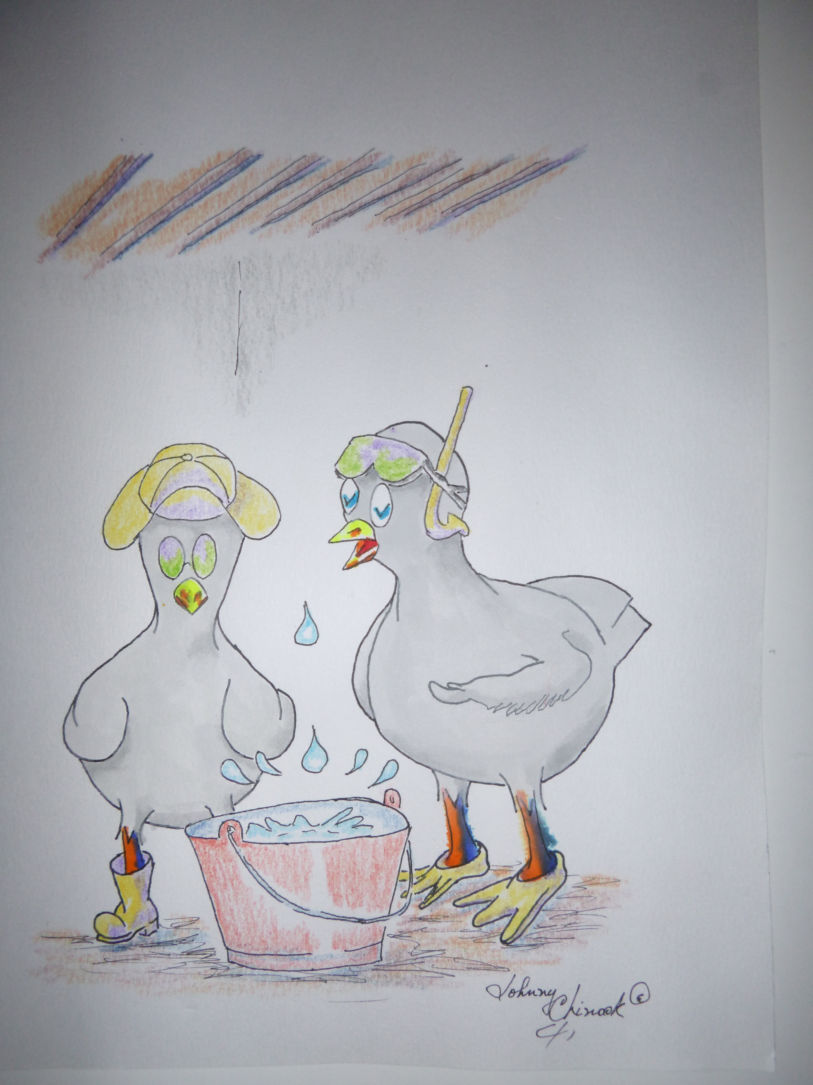 These beach bistros are seasonally operated and are constructed to collapse, except for the bar and kitchen during the winter season. Hence they have sliding sectional rooves that overlap, they tend to leak at times. Our bistro had at least ten pots and pans strategically